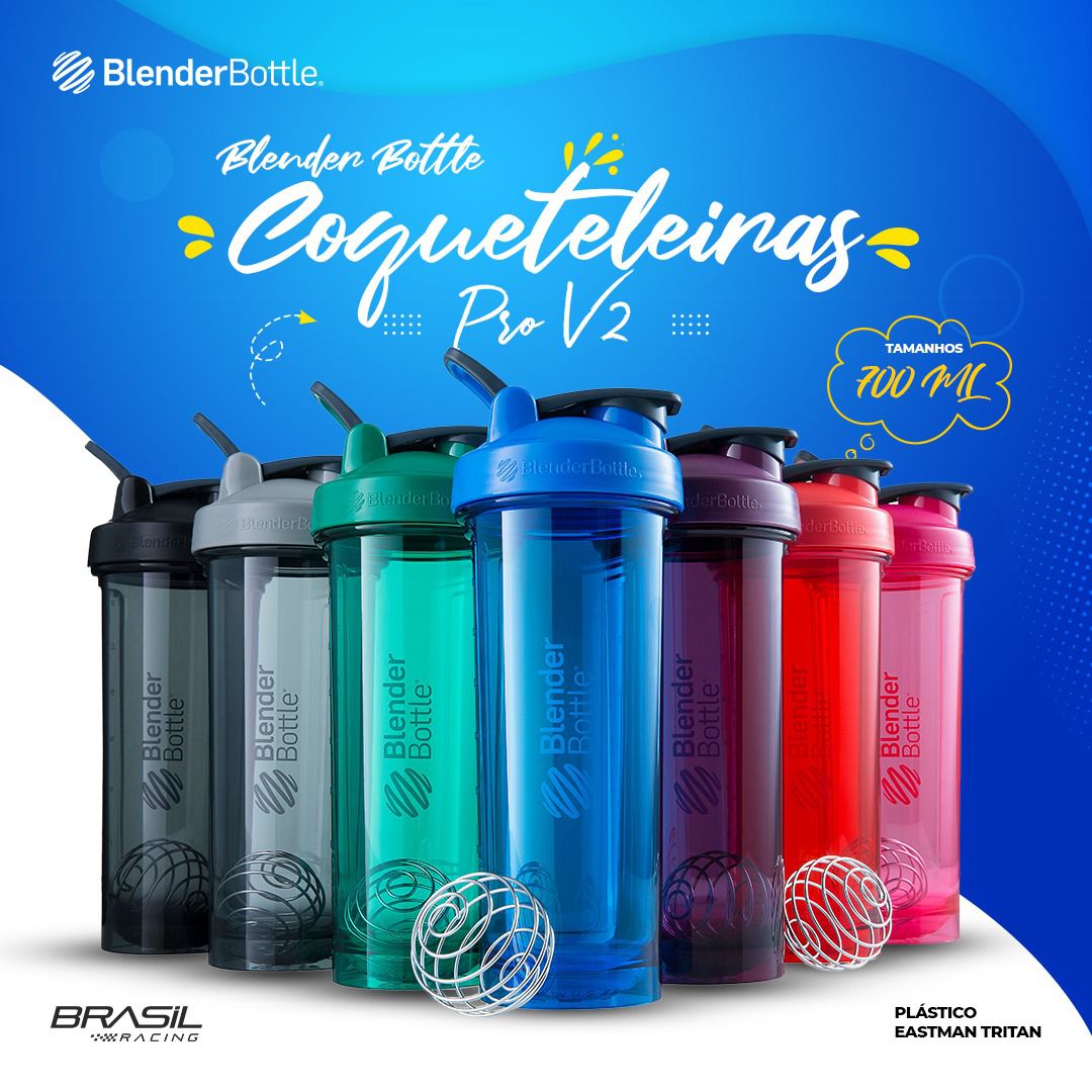 Coqueteleiras Blender Bottle, Com misturador em aço inoxidável.